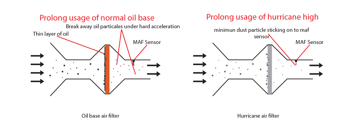 Introduction An engine not only requires fuel in order to function, but also oxygen through an air supply, to mix with the fuel in the combustion chamber. An air filter is used to prevent unwanted impurities from entering the chamber. The standard air filter is usually made from paper or fibre, which although has good filtration, also has high restriction to air-flow and requires periodical replacement. The Hurricane Stainless Steel filter has been specifically designed to be a direct replacement to your existing filter and to improve your engines overall performance. Construction Hurricane only uses the highest quality stainless steel SUS-304 directly from Japan to make our filter mesh, which has undergone extreme quality assurance testing. Using the latest technology in weaving, we are then able produce a super-fine filtering stainless steel mesh with a 60µm (micron) rating. This protects your engine from any harmful particles. It is then pleated to improve surface area and flow rate, then set in a natural rubber frame which has extreme durability in all conditions. Hurricane Racing Co. Ltd. holds the patents for their filters frames and construction, which allow for maximum surface area and air flow for any given filter size. This allows us to provide a high air-flow filter without compromising on filtration. Maintaining Reusable Filters Other aftermarket filters may use cotton, sponge or foam as a filter medium, all with the aims of improving performance and being reusable. While they may do so to some extent, they are not without drawbacks. They tend to be difficult to maintain, requiring dedicated cleaning solutions and oiling in order function properly. Some are very delicate and can be damaged easily if washed with incorrect solution or not left to dry naturally, which makes cleaning tedious and time consuming. If oil is required, too little will prevent proper filtration and too much will cause excess to potentially contaminate your MAF sensor. The Hurricane Stainless Steel filter does not require any oiling and will not contaminate your sensors. Maintenance is simple, requiring only detergent and water to clean and can be dried manually with a blow dryer. See our guide.